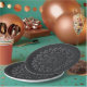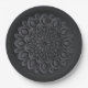 Modern black papercut mandala on black paper plate.