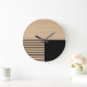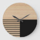 Contemporary Block Stripes Pattern On Faux Wooden Large Clock