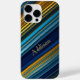 Contemporary Blue/Gold Abstract Stripes Case-Mate iPhone 14 Pro Max Case. This modern gold and blue abstract stripes iPhone 14 phone case is perfect for anyone who admires classic colours and lines, but with a trendy presentation. Moreover, this design can be easily transferred to another iPhone case if desired. Your name and choice of fonts can be easily inserted by using Zazzle's design tool.