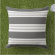 A contemporary outdoor pillow with charcoal grey and white stripe pattern.