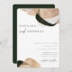 Contemporary Chic Abstract Wedding Invitation. Elegant shades of green, beige and gold abstract watercolor shapes. Features, forest green colour backing.