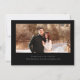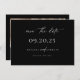 Contemporary Chic Minimalist, wedding photo save the date card. White typography with black background colours. Single horizontal photo on back.