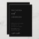 Contemporary Chic Minimalist Wedding Invitation. White typography on black backgrounds.