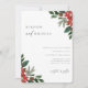 Contemporary Chic Minimalist Winter Botanical Wedding Invitation. Elegant watercolor winter botanicals and red florals.
