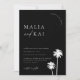 Contemporary Coastal Chic Minimalist Wedding Photo Invitation. White modern typography and palm tree accents on black backgrounds.
