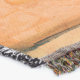 A quality printed throw has its advantages. This is a much finer weave throw than its loopier cousins, and though lighter, it is worth the investment for custom room accessorizing. The back is much prettier than the typical brown, and the fringe on the long sides very vivid, the selvage nicely done. Before photographing, I washed the throw in cold water, delicate, with a thicker woven throw the same size. On tumble dry low, this throw was dry in half the time as the other. This is a very practical quality if you use throws for furniture covers or to wrap up in frequently. The sleekness of the fabric makes it a great layer for accenting or protecting without the feeling of sitting on too much stuff. Perfect for napping or when you feel a light chill coming on. The color printing is beautiful and on this fabric, matched the design and color of my Photoshop image. This is an advantage for blending room fabrics and colors. The fringe on the short sides prints the colors from the design image and therefore varies from the side fringe. I streaked a white fractal line through the plaid pattern to give the illusion of weaving. This printed as crisp as an illusory thread, and put some white in the short side fringe, showing another advantage of print vs loomed- for artistic purposes, line lines, detail, and color integrity can be planned and preserved. My loomed throws have color limitations and more of a needlepoint texture. Print throws reproduce an exact image. The throw felt a little stiff straight out of the package, but this went away in the first delicate wash. Of course I searched the wash water for ink or bleeding and there was none.