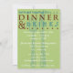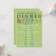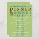 Dinner party invitation with large, faded fork and knife on a bright green background. Large, contemporary text in maroon and blue fills the invitation header from edge to edge, and invites your guests to get together for dinner and drinks. Customise with your party's information. Choose your own paper, font, size and colour.