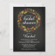 Beautiful bridal shower fall autumn leaves & acorns wreath set on a black background.