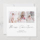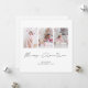 Contemporary Square Family 3 Photos Merry Christmas. Available digitally and printed. Merry Christmas is in a stylish set script. Easily replace the sample three images with your own and personalise with your names on the front and greeting on the back.