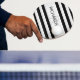 Contemporary Faux Silver Ombre Stripes & Black Ping Pong Paddle
