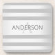 Contemporary Faux Silver Ombre Stripes & Grey Coaster