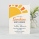 A clean modern sunshine design featuring a bold sun motif and warm golden tones. The contemporary layout creates a bright yet balanced atmosphere, perfect for celebrating a new arrival. This sunshine theme blends simplicity with radiant warmth, offering a stylish and uplifting aesthetic inspired by current American baby shower trends.