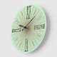 Contemporary Green Mint with Roman Numerals. Background has a light brown graphic weave.