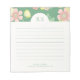 These contemporary notepads with colourful floral detail in green, pink and yellow, are stylish and playful. The design includes a modern set of fonts in matching green and initials, ahainst a soft ivory background.