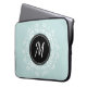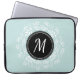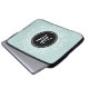 Trendy laptop sleeve with mint blue floral wreath and personalised monogram.