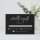 This RSVP card boasts a sleek and modern design with a bold, contemporary script. The straightforward layout featuring checkboxes and a designated line for the guest count ensures crystal-clear responses from your invitees. This response card is perfect for couples who prioritise a clean aesthetic and an efficient RSVP process.
