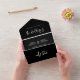 All in one! Economical and eco-friendly, this seal and send invitation includes a RSVP postcard. A bold and trendy typography for your wedding stationery, simple yet elegant with a black and white theme. Fully customisable: you can change the colours of the font and background if needed.