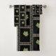 CONTEMPORARY MODERN GREEN LEAF ON BLACK BATH TOWEL SET
