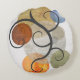 Boho inspired geometric design with green, beige, blue, and orange circles and unique textures and floral overlays.