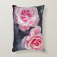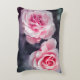 Accent pillow with pink roses design on dark background.