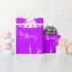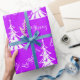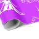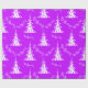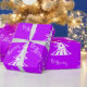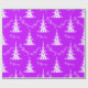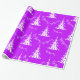 A modern, yet elegant Christmas wrap featuring a purple and white theme of white Christmas trees and 'Be Merry' Christmas greetings, scattered over a purple background to give your gift wrapping a contemporary, stylish look this holiday season.