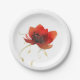 Contemporary Red Poppy and Simple Gold Foliage Paper Plate