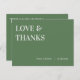 Contemporary Sage Green Wedding Love And Thanks Postcard