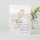 Photo wedding invitation featuring your names in elegant serif bold font with "and" and "reception to follow" in modern handwritten script lettering. Personalise with your wedding details beneath.