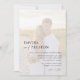 Photo wedding invitation featuring your names in elegant serif bold font with "and" and "reception to follow" in modern handwritten script lettering. Personalise with your wedding details beneath. On the back of the card you can find space for QR CODE wedding website and a room for an extra message.