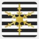 Modern Christmas envelope stickers done in a black and white horizontal stripe pattern, with graphics of a single gold tone snowflake. Customise this sticker to add your own text. Coordinating holiday products are available.
