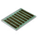A contemporary turquoise air grate is the subject of this work by Jennifer Goldberger. Rust stains show on the grate, giving it a well used feel. A fun print, order yours today!