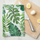 Contemporary Watercolor Tropical Leaves Green Tea Towel