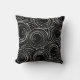 Contemporary white circular design on black reversible MoJo pillow.
