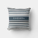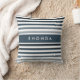 Contemporary Wide Stripes With Name in Steel Blue Cushion