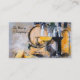 Stylish business card, with an illustration of a wine barrel, wine glasses and bottles of wine. Custom text fields, on the front and back, are ready to personalise for your business. A great looking stand out card perfect for any wine orientated business.
