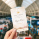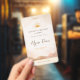 The front features a customisable event title, name, and role, while the back includes an optional photo overlay and QR code area for easy sharing. The photo is designed with a soft opacity, allowing your image to blend seamlessly into the background or be removed entirely for a cleaner look.