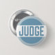 Blue and white tone modern design with the text Judge. Easy to read button is perfect for contests and events that require a judge. Perfect for mock trails, pageants, science fairs, spelling bees, flower shows, dog shows and sports events.