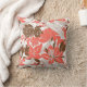 Coral and cocoa brown colour way. This delicate pen and ink illustration of tropical flowers, has a vintage aloha shirt look. Lilies, protea, and heliconia are growing among banana and palm leaves. Each colour way has a contrasting neutral colour against a white background and a pop colour accent. There are several coordinating home furnishing items.