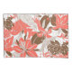 Coral and cocoa brown colour way. This delicate pen and ink illustration of tropical flowers, has a vintage aloha shirt look. Lilies, protea, and heliconia are growing among banana and palm leaves. Each colour way has a contrasting neutral colour against a white background and a pop colour accent. There are several coordinating home furnishing items.