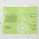 Graphic flowers outlined in white against a soft green make a beautiful statement on this wedding program flyer. Similar flowers are repeated as watermarks on the reverse. A sentimental look for a special day. Available in alternate colours with matching products.