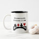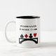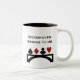 Bridge player's coffee mug done in white, with graphics of a black bridge symbol and the red and black card suits, on top. Personalise the black text to read what you want. Great for bridge clubs and tournaments.