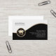 This home remodeling business card features black and white segments separated by a wavy gold strip. An elegant gold icon of a house lies on the lower left side of the design, that's generally suitable for businesses or professions related to construction, contractor, home repair, repairs, handyman, skilled worker, skilled labour, trade skills themes.