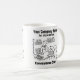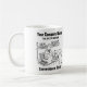 Corner shop coffee mug. Convenience Store cartoon on a mug. Add your company name and number.