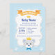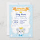 Convite para chá de bebê modelo bebê urço “Prince Bear” com todos os textos editáveis