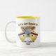 This lighthearted mug design features a couple of funny, fierce looking cookie characters facing off in front of a mixing bowl and crossed wooden spoons under an arched text image reading "Let's Get Ready to Crumble!" It is easy to customise for your bake off event.