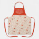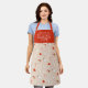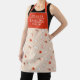 This fun holiday baking apron features a pattern of iced Christmas cookies - a Santa hat, snowman, Christmas tree, an angel, mittens, and a candy cane. The text reads, "COOKIE BAKING CREW," but it can be customised to say anything you'd like. :) The red is kind of an orange - red colour, and the background is a beige.
