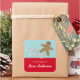 This Holiday Cookie Exchange sticker features a graphic of a cute gingerbread and hand lettered script text that reads: Cookie Exchange. Customisable text, at the bottom, reads: From the kitchen of (your name).