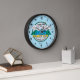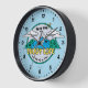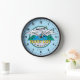The size of the clock is dramatic and the abstract alcohol ink design is soothing and intricate at the same time. I chose the black frame that adds pop to the blue and gold design. The gold printing would be better in a slightly darker or larger font. I love it and I’m looking for just the right place in ny new apartment. I would recommend this clock for a personal gift or a present. I feel that the quality is excellent for the money! I’m a bit of a clock nut so I’m pretty particular about my purchases. The clock is larger in diameter than many if the clocks I have, so it stands out very well. I think a slightly darker printing color and a moderately larger size would best suit a professional decor or add more impact in a work place item.