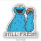 Cookie Monster holding his favourite snack including the phrase "still fresh". Decorate all your favourite things with this awesome Sesame Street sticker. Perfect for laptops or waterbottles! | © 2019 Sesame Workshop. www.sesamestreet.org
