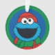 Keep your Christmas tree warm and cosy with this charming Cookie Monster ornament! The ceramic keepsake features everyone's favourite fuzzy blue monster bundled up for winter, wearing a cheerful red beanie and a green and red striped scarf. Set against a bold blue and green background, this design is perfect for the holidays. This ornament is typically fully customisable with a name and year on the back, making it a great personalised gift, yearly keepsake, or stocking stuffer for any Sesame Street fan!